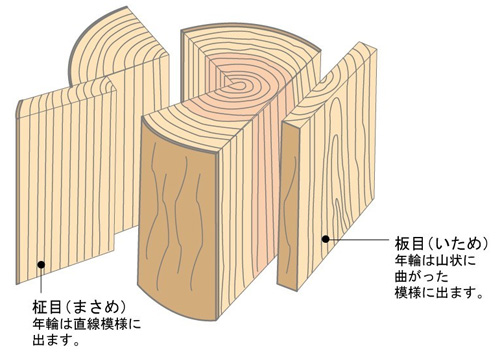 - 板目・柾目(イタメ・マサメ)