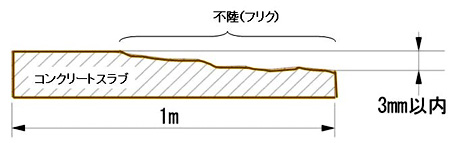 - 床の凹凸のことで、平らでない状態のこと。 日本複合・防音床材工業会では直張りフロアを施工する下地の「不陸」精度は、ゆるやかな「不陸」は1m当たり深さ3mm以下、部分的な「不陸」は深さ3mmで100cm²以下としています。